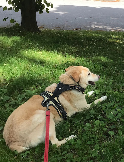 Albin fick en längre promenad redan på morgonen. Här är han ute på förmiddagens långpromenad...