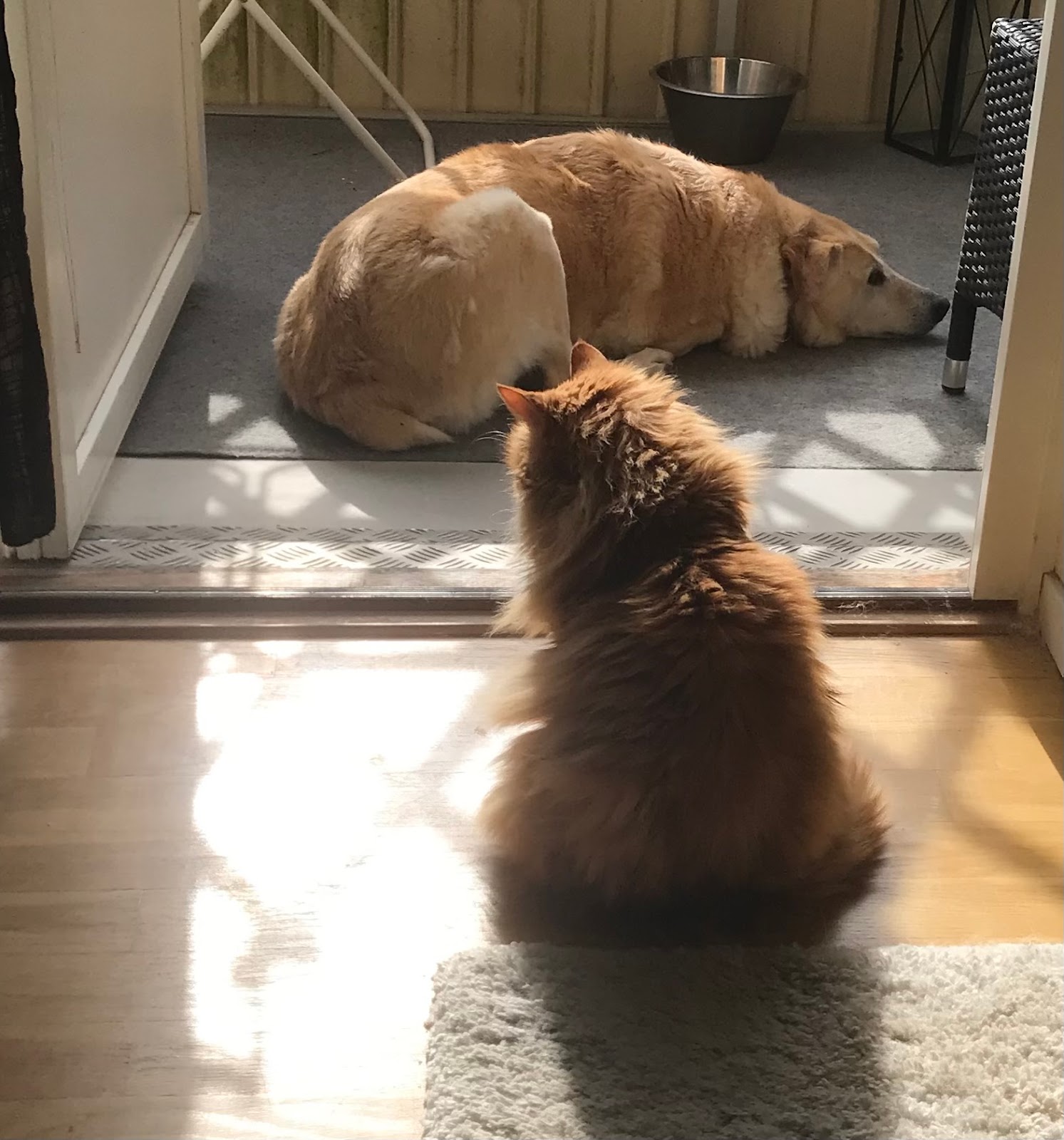Albin vilar också efter maten....Iris håller sig allt oftare i närheten av honom