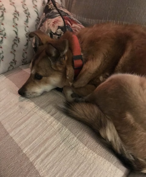 Efter våra promenader var vi båda två trötta, så när vi hörde ett främmande ljud ute i trapphuset, så satte vi igång att skälla varnande, men ingen av oss orkade röra på oss. Jag låg i soffan och skällde och Albin i mattes säng. Matte tyckte att det var helt onödigt att vi förde sådant oväsen, när vi ändå inte orkade ta oss ut i hallen...Snacka om vakthundar, sa matte...